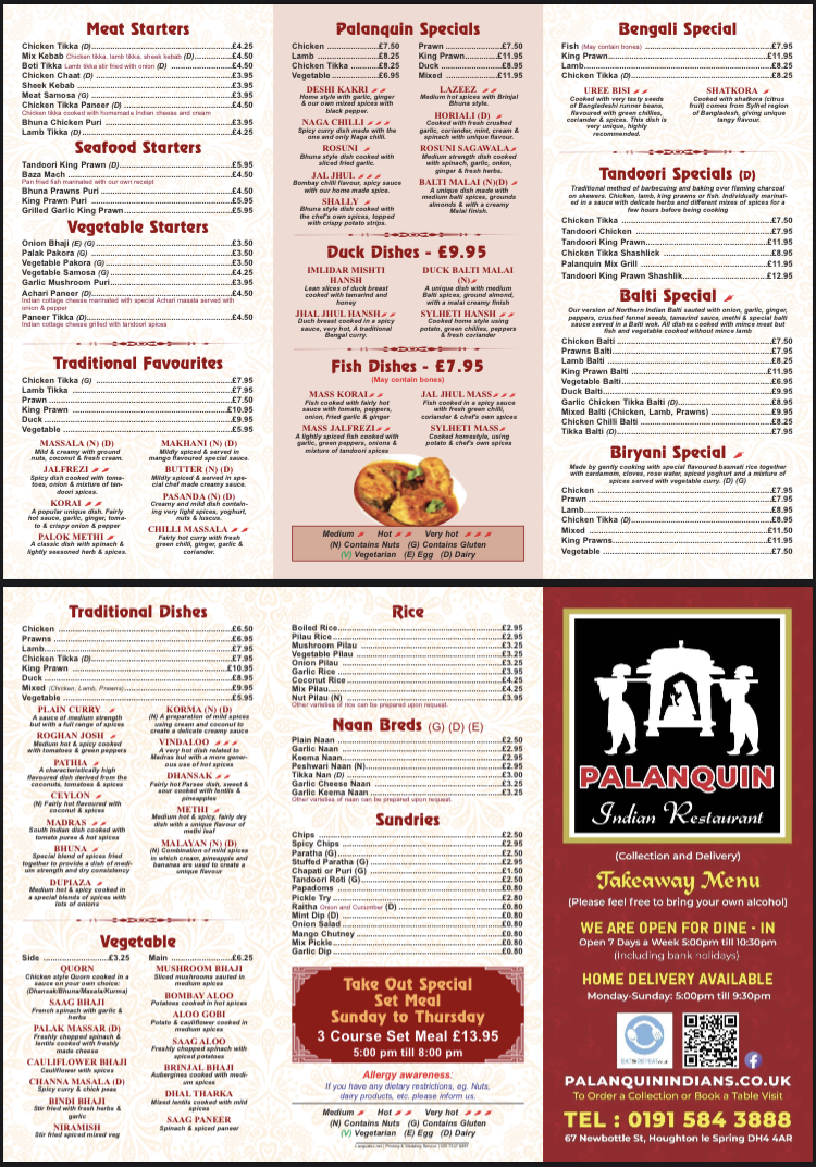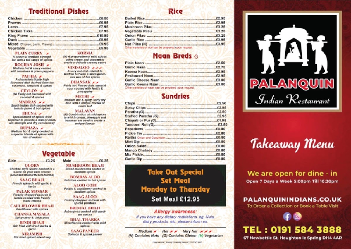If you're craving a delicious, authentic Indian dining experience in Houghton le Spring, the Palanquin Indian Restaurant is a must-visit. Located at 67 Newbottle St, Houghton le Spring DH4 4AR, United Kingdom, this establishment offers a fantastic selection of traditional Indian dishes that will leave you wanting more.