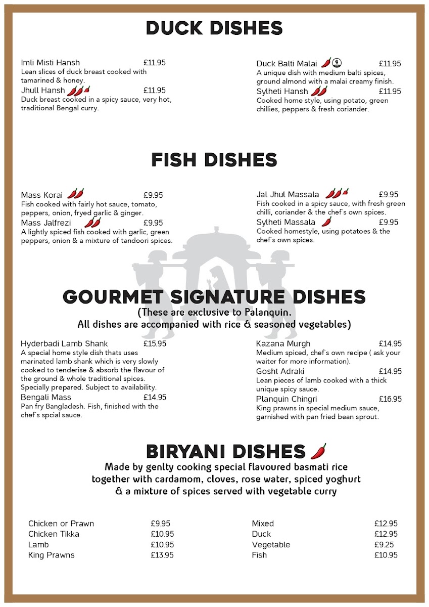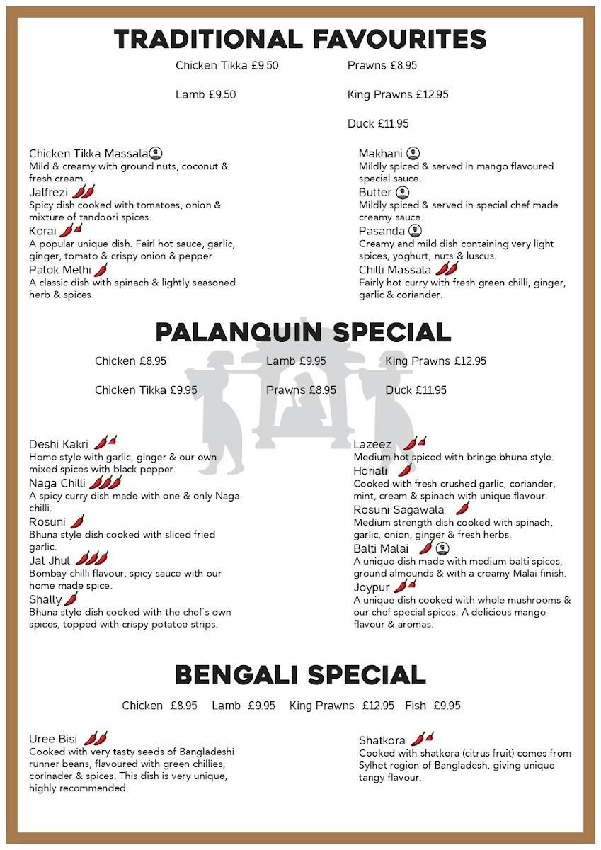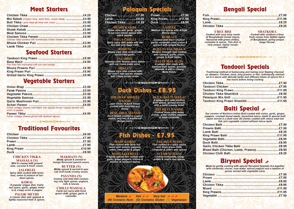 The Palanquin Indian Restaurant Menu is an extensive showcase of both classic and innovative Indian flavors, catering to a variety of tastes. Whether you're a fan of rich curries, tandoori delights, or spicy street food, the menu has something for everyone. The use of high-quality ingredients and the perfect balance of spices ensures that each dish bursts with flavor.